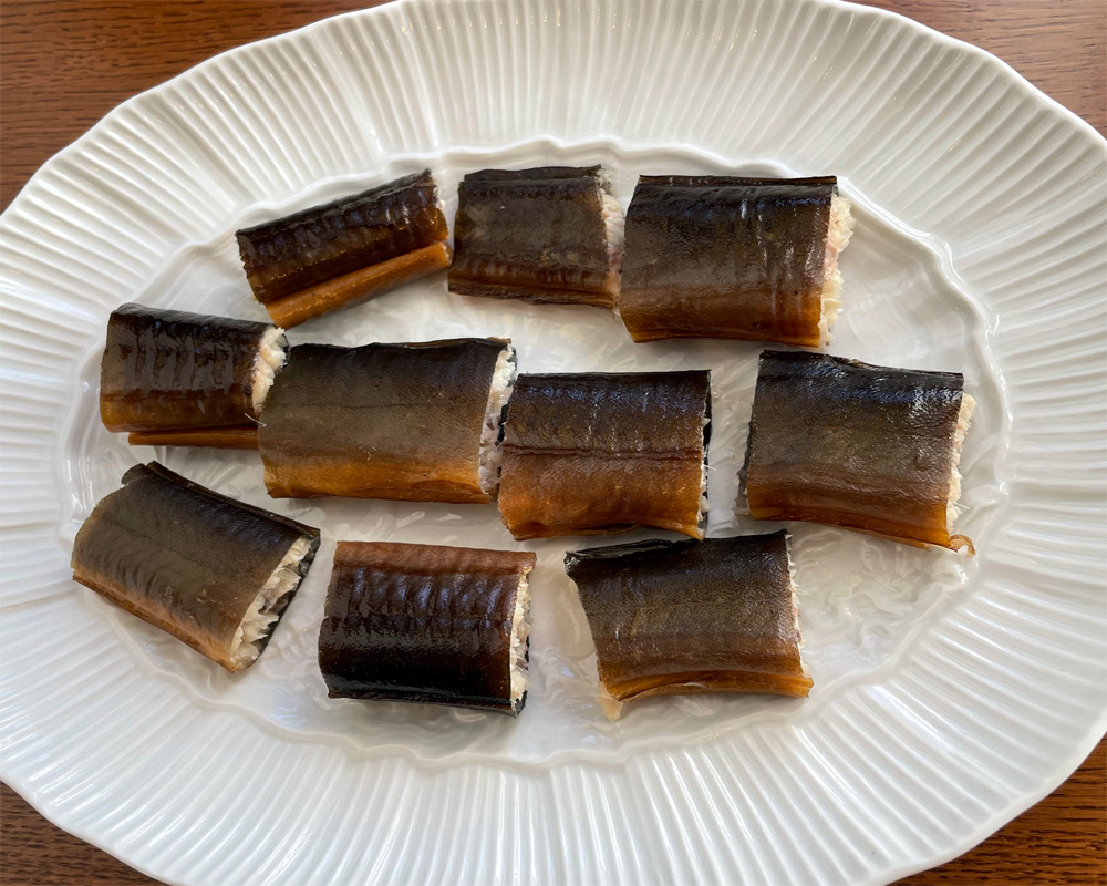 Затем обвязывали пеньковым шпагатом по образу и подобию варёной колбасы, чтобы он не развалился под воздействием высоких температур и соковыделения в коптильне, вставляли в рот канцелярскую скрепку, к которой и крепился верхний конец шпагата. Вешали всё это на решётки коптильни и саму её накрывали металлической крышкой, иногда и брезентом. Коптили до готовности, на ольховой розовой щепе, добавляя яблоневые веточки, если для сладости и под водочку, или вишнёвые, если для горчинки и под пиво. Угорь в конце приготовления приобретал тёмно-коричневый цвет, шпагатная обвязка слегка врезалась в тело рыбы под воздействием распираемых изнутри жирных соков, рыба крепла и уже не грозила развалиться, вода отдана, остался вязкий и вкусный жир, который уверенно держал всю деликатесную конструкцию. У первого, вытащенного для определения степени готовности из коптилки угря, просто откусывали хвост и, держа рыбу в вертикальном положении, пили вкуснейший, ароматнейший густой и жирный сок. Без предварительных 100 грамм мне даже сложно представить легитимность этого процесса. Затем, мы давали этим угрям остыть, заворачивали в несколько слоёв пергаментной бумаги, которую он быстро пропитывал жиром, и мы снова повторяли процесс упаковки поверх уже существующей. Упакованный и успокоившийся угорь отправлялся во все города и веси, от Москвы до самых до окраин, в зависимости от административной, субординационной и кадровой конфигурации нашего и смежных ведомств, стоящих перед ним задач, наших личных дружеских привязанностей, карьерных планов и текущих конъюнктурных потребностей. Шучу, но не очень. Словом, копчёный угорь – это оружие дальнего действия и массового поражения.