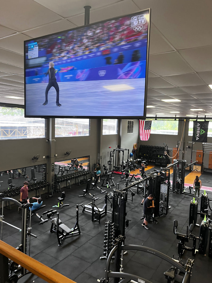 Хожу на тренировку и смотрю трансляцию зимних олимпийских игр. Дома у нас нет телевизора.