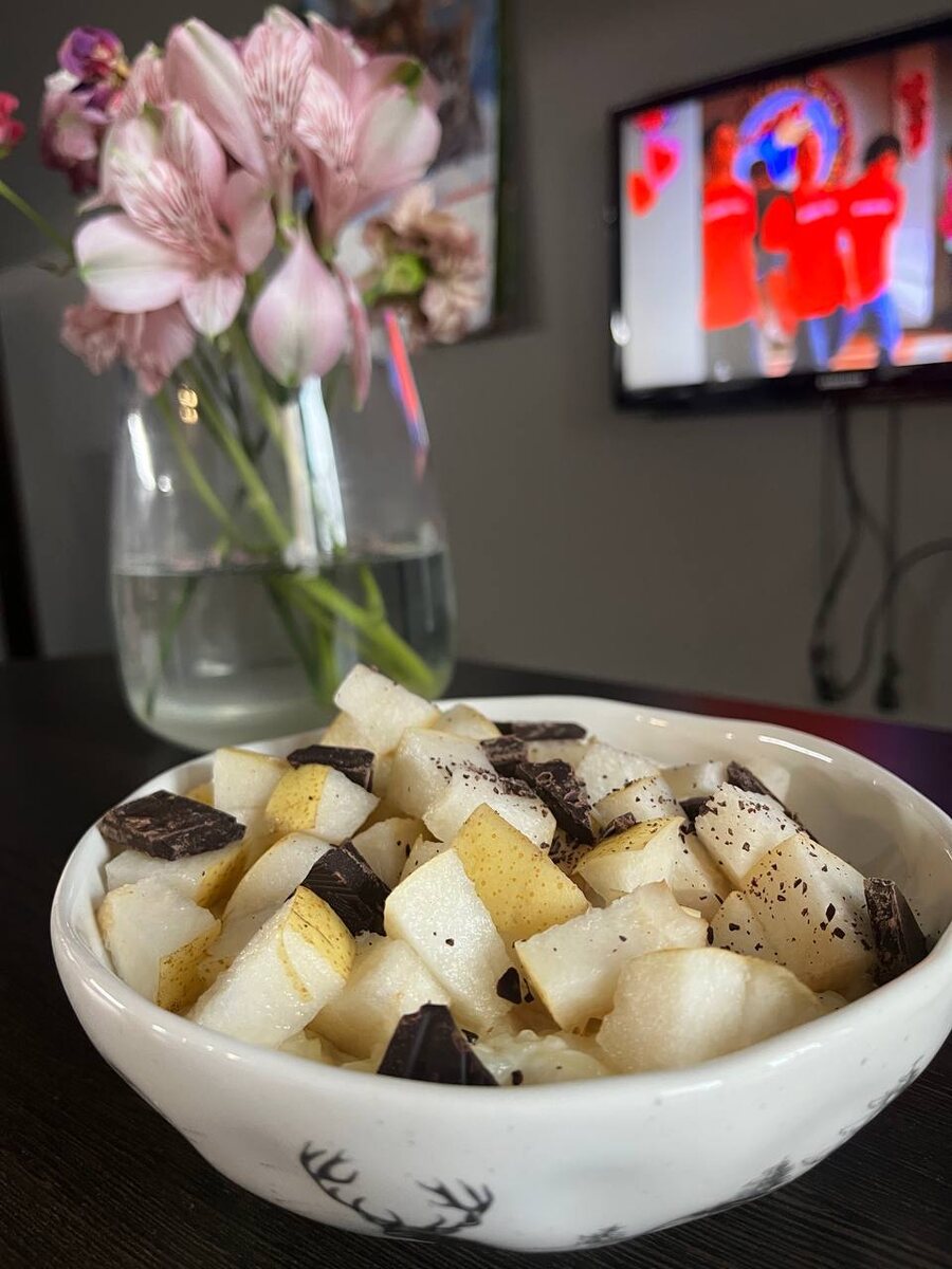 Подборка быстрых рецептов для тех, кто ценит вкус и время. Каждое блюдо готовится меньше чем за 15 минут — просто, удобно и без лишних ингредиентов. Здесь собраны завтраки, обеды, ужины, закуски, салаты и десерты. Заберите подборку рецептов в боте — и готовьте вкусно, даже когда времени совсем немного 🥣🥣🥣 Мой муж очень любит рисовую кашу, и я тоже. У меня с ней сразу воспоминания из детства: бабушка готовила рисовую кашу на даче. Она была такая вкусная, что этот вкус у меня до сих пор в голове. Рецепт очень простой, я даже не стала ничего параллельно фотографировать. Ингредиенты • рис круглозёрный — половина стакана (стакан 200 мл.) • молоко — 600 мл • сахар — 1 столовая ложка • груша — для подачи • тёмный шоколад — для подачи Как готовить • Рис и молоко беру в пропорции 1:3. • Варю без воды, только на молоке. • Добавляю столовую ложку сахара. • Варю, периодически помешивая, чтобы ничего не пригорело. Стоять над кастрюлей не нужно — просто не забывать про неё и иногда мешать. Пока