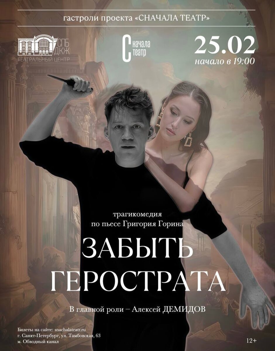 🗓️ Напоминаем, что 25 февраля на сцене Санкт-Петербургского дома культуры железнодорожников играем спектакль «Забыть Герострата». Ждём встречи с жителями северной столицы❤️ P.S. Если вы ещё не поделились этой новостью с друзьями — самое время сделать это!