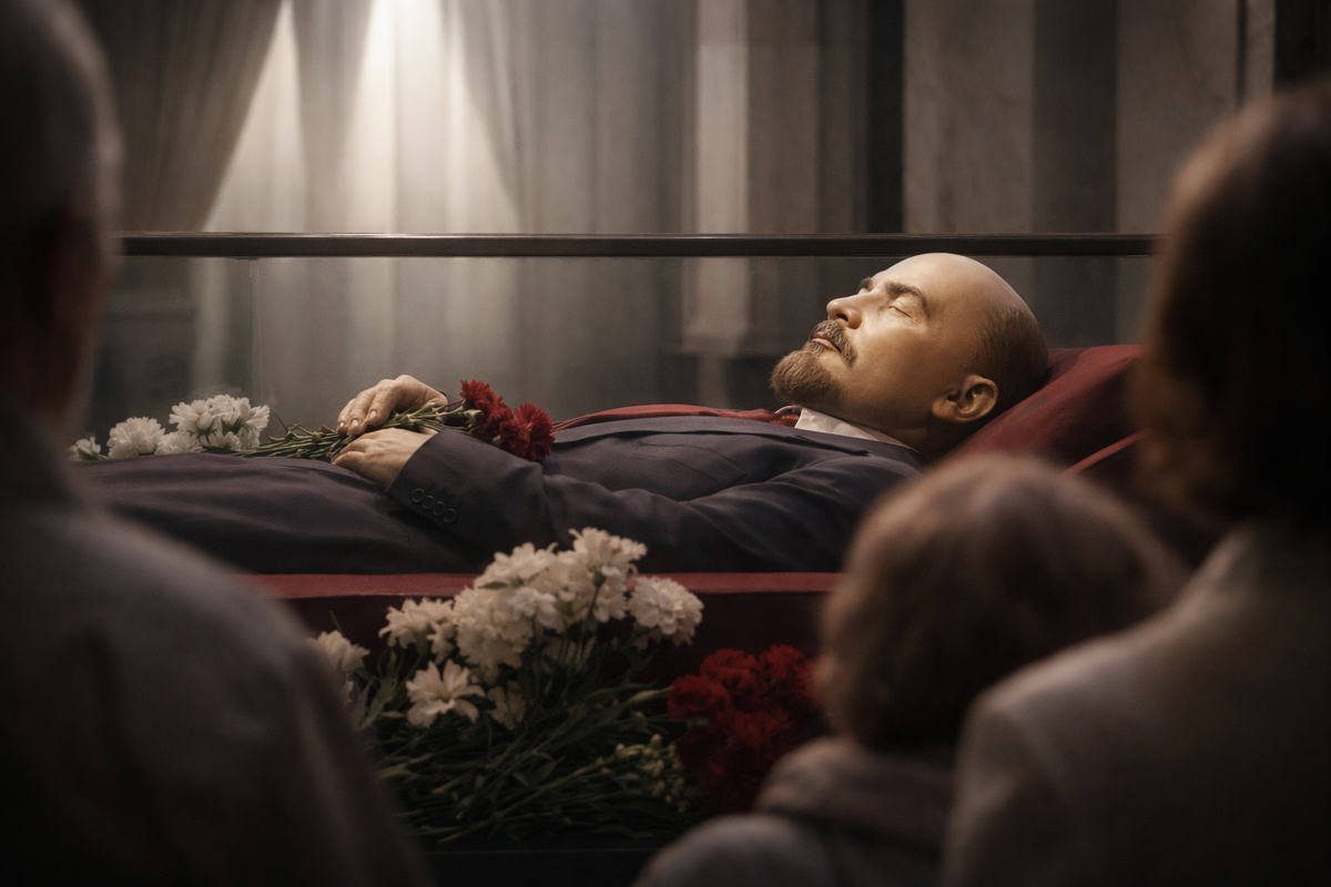Смерть Ленина не должна была стать шоу. Надежда Крупская умоляла не воздвигать памятников и не устраивать пышных церемоний, желая просто похоронить мужа рядом с матерью в Петрограде. Но у истории и политбюро были свои планы на этот «объект». Когда 21 января 1924 года в Горках остановилось сердце вождя, на улице стоял лютый мороз под -30°C. Изначально планировалось обычное прощание, однако поток людей в Колонный зал Дома Союзов не иссякал. За первые дни мимо гроба прошли десятки тысяч человек. Встала дилемма: предать земле по христианскому обычаю или превратить тело в вечный символ. Выбрали второе, доверив задачу патологоанатому Алексею Абрикосову (первичное вскрытие) и дуэту биохимика Бориса Збарского и анатома Владимира Воробьева. Последним пришлось совершить невозможное. Органические ткани — штука капризная: без должной обработки они темнеют, высыхают и поддаются гниению. Ученые заменили жидкости в тканях на бальзамирующий раствор (глицерин, спирт и хлорид калия). Это была не просто