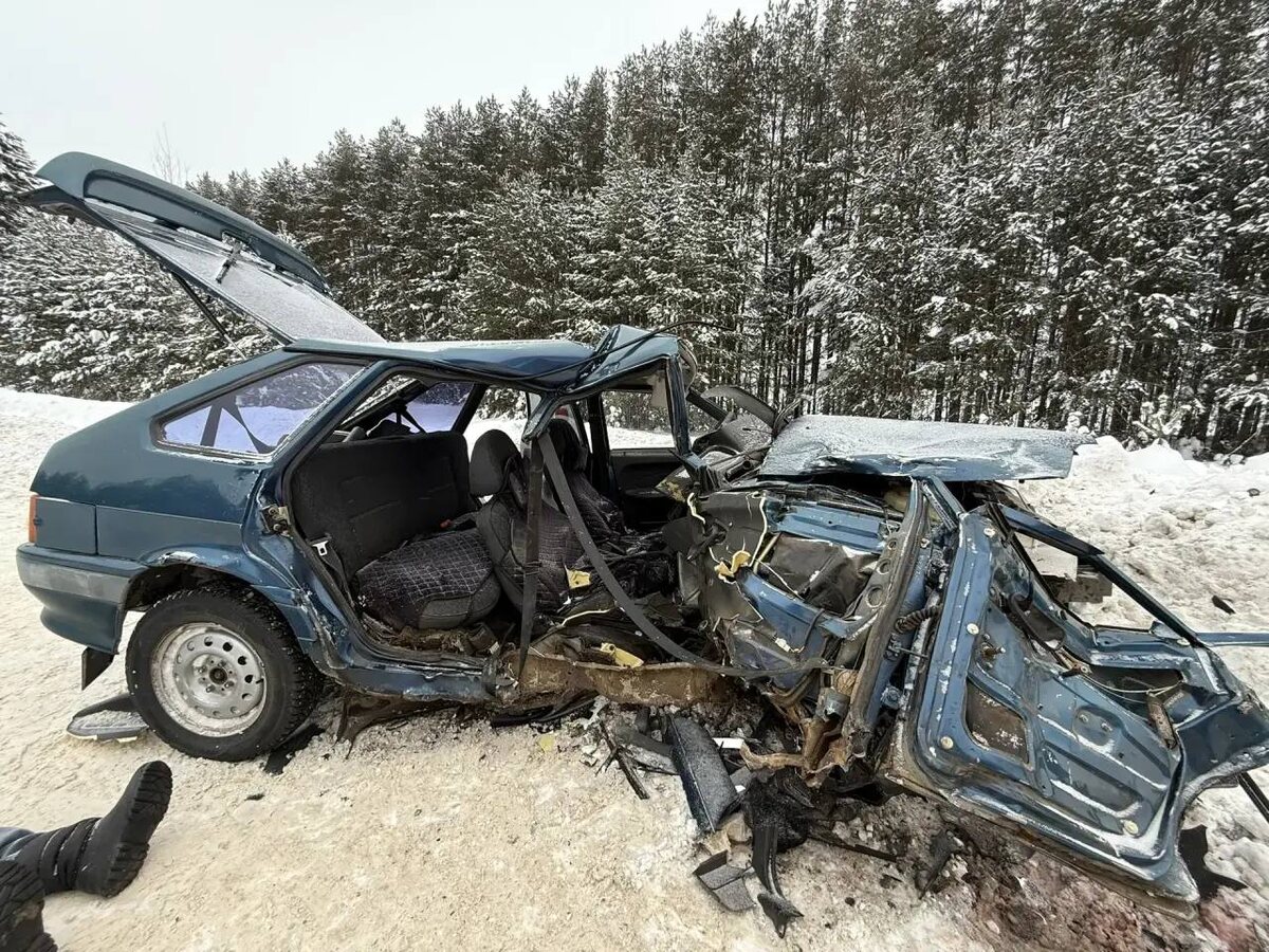 Авария произошла 11 февраля около 11:10 на трассе на дороге от трассы Игра – Глазов, сообщает Госавтоинспекция Удмуртии. По предварительным данным ГАИ, 47-летний водитель автомобиля ВАЗ-2114 не справился с управлением и выехал на встречную полосу, где произошло лобовое столкновение с автомобилем Chevrolet Niva. В результате столкновения смертельные травмы получил 70-летний пассажир ВАЗа. Водитель и две пассажирки (43 и 47 лет) ВАЗа, а также два пассажира «Нивы» (31 и 48 лет) с различными травмами доставлены в больницу. Фото: Госавтоинспекция Удмуртии Подписывайся на Ижевский бизON #Удмуртия