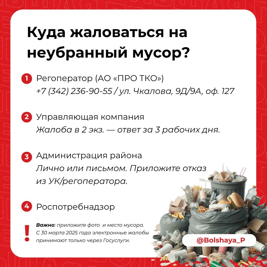 Вы все чаще присылаете в @super_redaktor фото мусора, который не вывозят неделями. Спасибо за вашу активность — мы видим каждое обращение. Но фото в соцсетях недостаточно — нужно действовать официально. Мы собрали всю информацию в одной карточке. Сохраняйте и делитесь с соседями. Другие проблемы — отправляйте в предложку. ❤️ Подписаться | Предложить новость | Дать «буст» | Мы в MAX