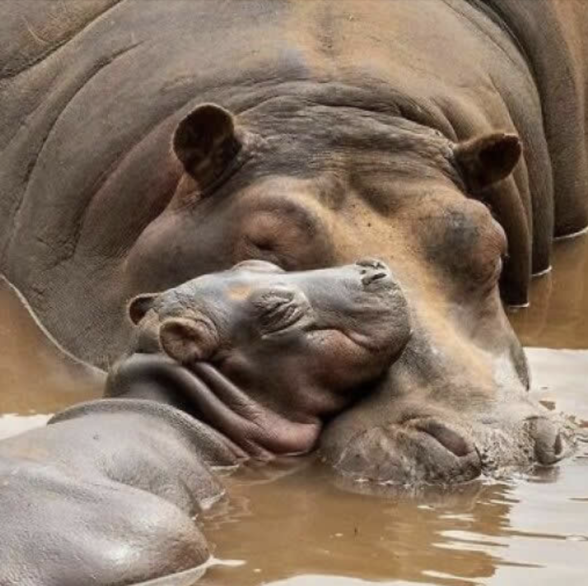 Милая картинка детства малыша и материнства бегемотихи впечатлила меня своей искренностью и добротой.