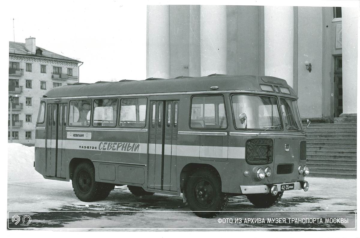 Рассказываем про ПАЗ-672С, он же «Северный». Весной 1965 года на заводе ПАЗ была выпущена северная модификация автобуса – ПАЗ-672С. Модель была рассчитана на эксплуатацию при морозах до –60 °C. Конструкторы впервые использовали новые материалы: кузов утеплили пенополистиролом и специальным войлоком, окна сделали двойными, а все резиновые детали – морозостойкими. Аккумулятор получил дополнительное утепление, а также в салоне установили дополнительный отопитель. Первые опытные образцы прошли испытания в Якутске и показали отличную теплоизоляцию. При работе в городских условиях, когда происходит частое открывание дверей, при –58 °C, в передней части салоне держалось температура не ниже +10 °C, и только у задней двери опускалась до минусовой. Серийное производство ПАЗ-672С стартовало в 1969 году и продолжалось до конца 1980-х. Всего выпустили 7147 автобусов.