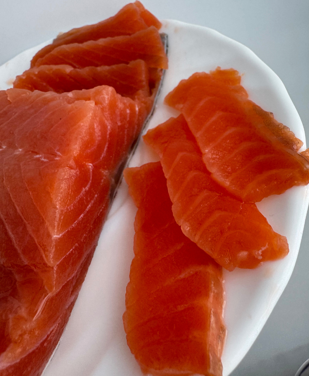 Р.S. Срок хранения красной слабосолёной рыбы (филе или нарезки) в бытовом холодильнике в среднем не более 7 суток при температуре от 0 до +4°С.