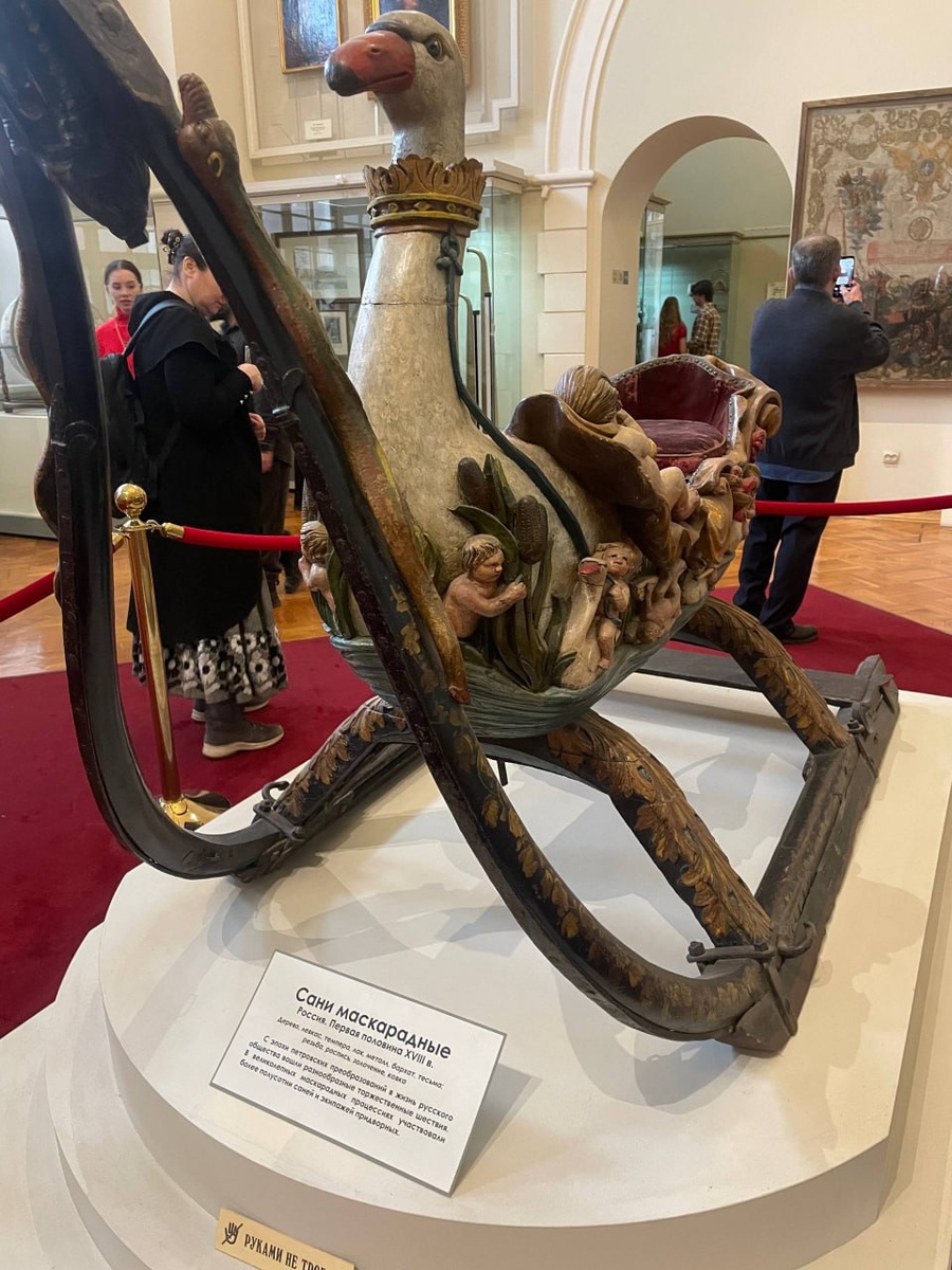 Одно из них - Сани маскарадные. В таких или похожих ездил сам император Пётр I