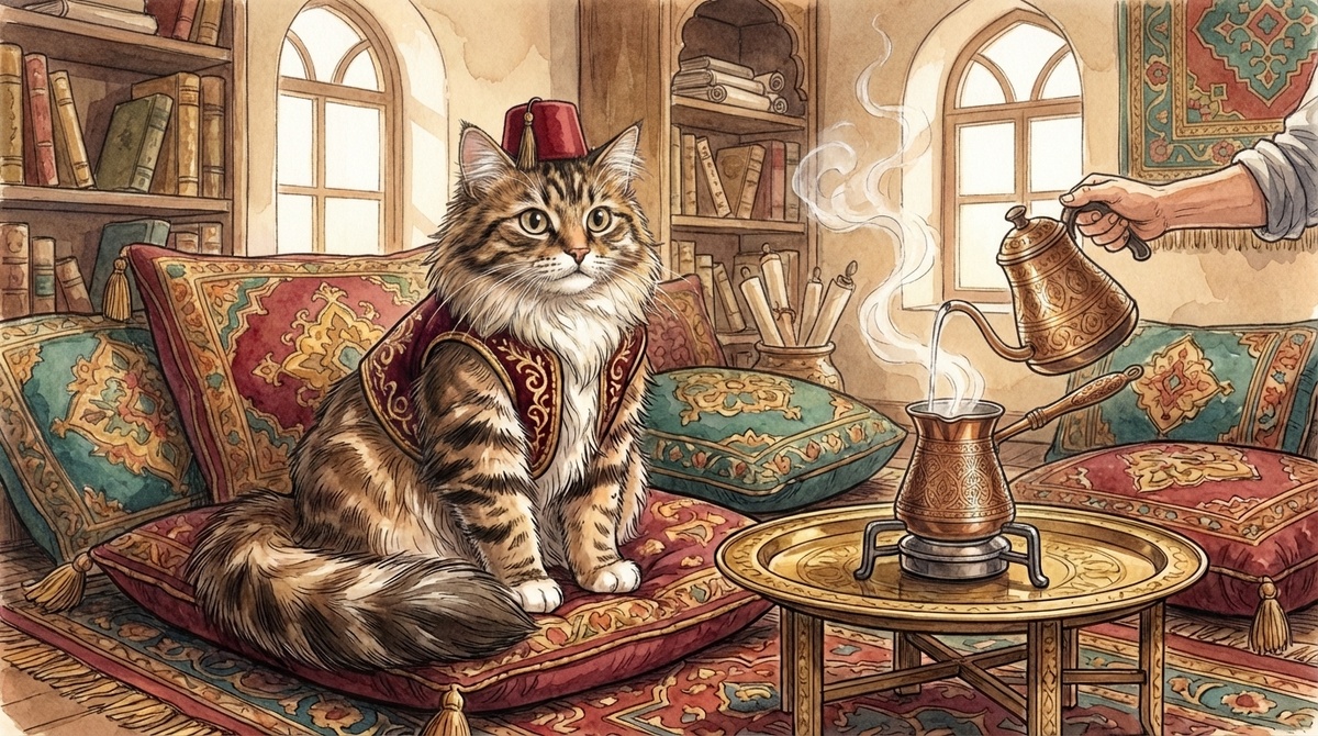 Моя кошка, кстати, кажется, в прошлой жизни точно был каким-нибудь османским ученым. Посмотрите на неё — она явно знает о кофе больше, чем все бариста вместе взятые.