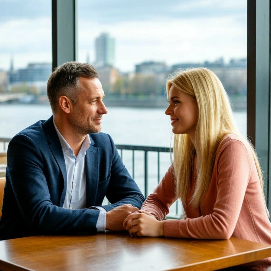 Напротив него, улыбаясь, сидела молодая девушка. Они смотрели друг на друга влюблёнными телячьими глазами, и мило щебетали о чём-то.