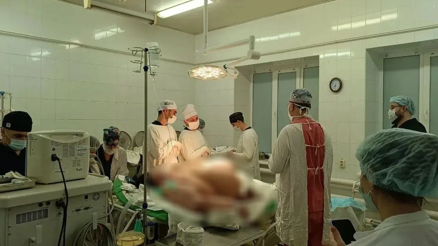 В Балаковской городской клинической больнице (Саратовская область) провели «уникальную операцию». Об этом сегодня сообщили в Telegram-канале учреждения. Вчера, 10 февраля, в больницу на «скорой помощи» доставили 44-летнюю женщину с ущемленной вентральной грыжей, которая появилась со временем после кесарева сечения. Удаление грыжи – это обычная операция. Однако редкий сопутствующий диагноз пациентки – ожирение четвертой степени – сделал операцию «уникальной», отметили в больнице. Пациентка весит 198 килограммов (в обычной жизни она передвигается только с ходунками). Стандартный операционный стол такой вес выдержать не может, поэтому его заменили крепкой кроватью из реанимации. «Чтобы просто добраться до грыжи, нужно было преодолеть слой подкожного жира в 24 сантиметра! Хирургам после разреза приходилось держать живот с обеих сторон. На операцию вышла бригада из четырех хирургов. Это нонсенс для плановой грыжи, но для данного случая – необходимость», – рассказали медики. Операция длилас