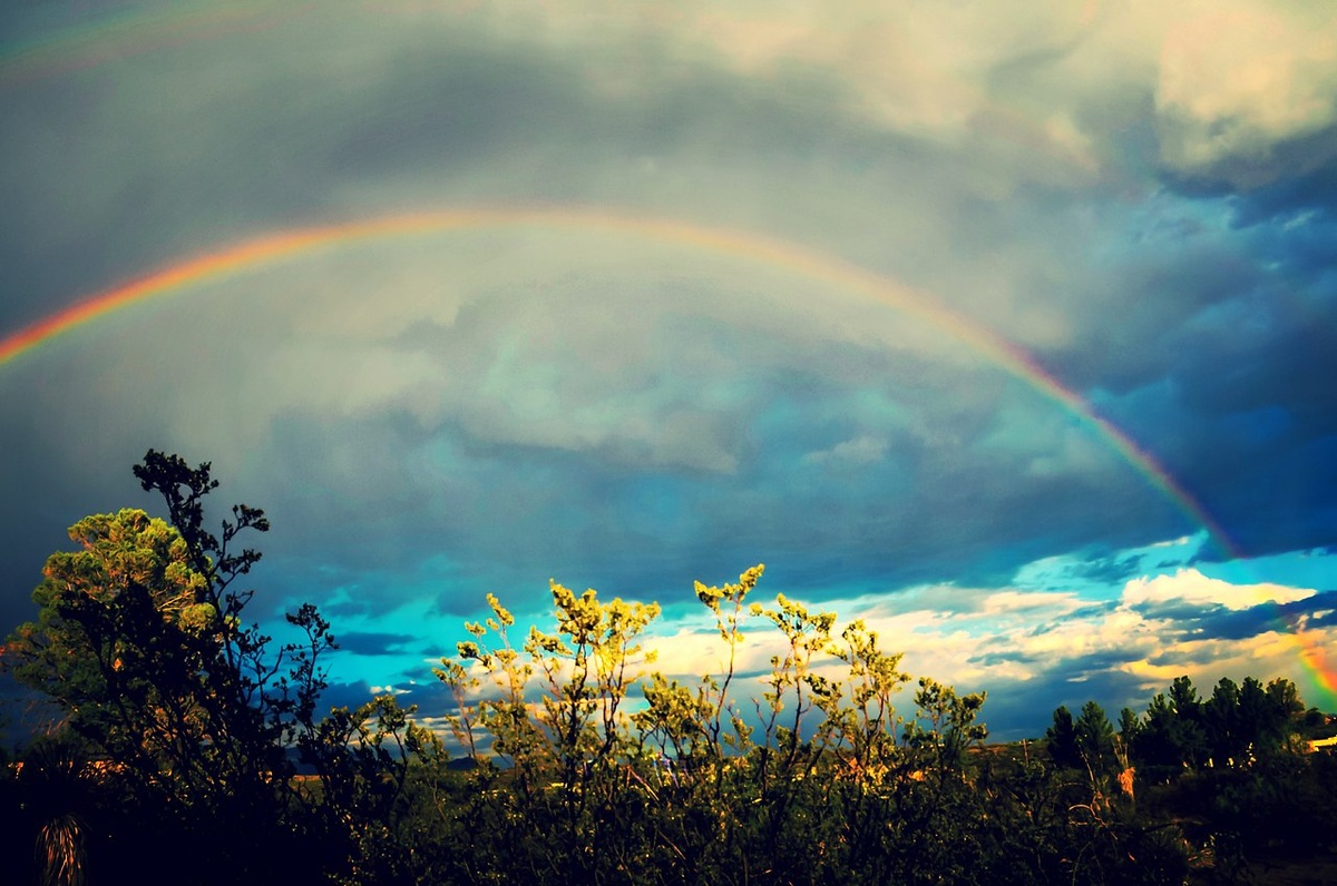 - Двойная радуга — вторичная дуга снаружи первичной с обратным порядком цветов.