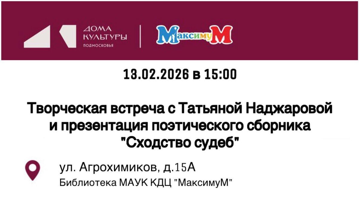 Приглашаем всех желающих на творческую встречу и презентацию поэтического сборника Татьяны Наджаровой!