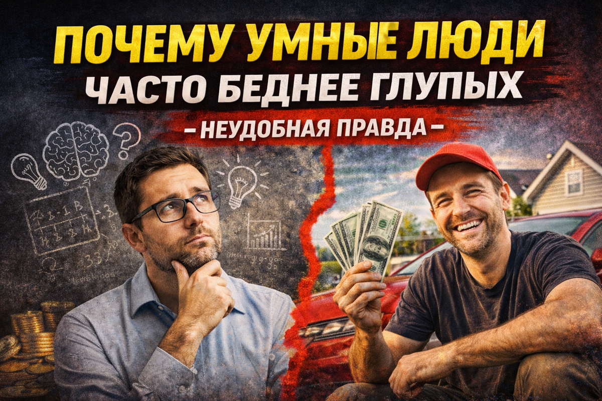 Но реальность жестче: интеллект сам по себе не делает человека богатым. Деньги зарабатывает не ум, а поведение. Умный человек: В итоге он… ничего не начинает. Человек попроще действует быстрее: В деньгах побеждает не тот, кто умнее.