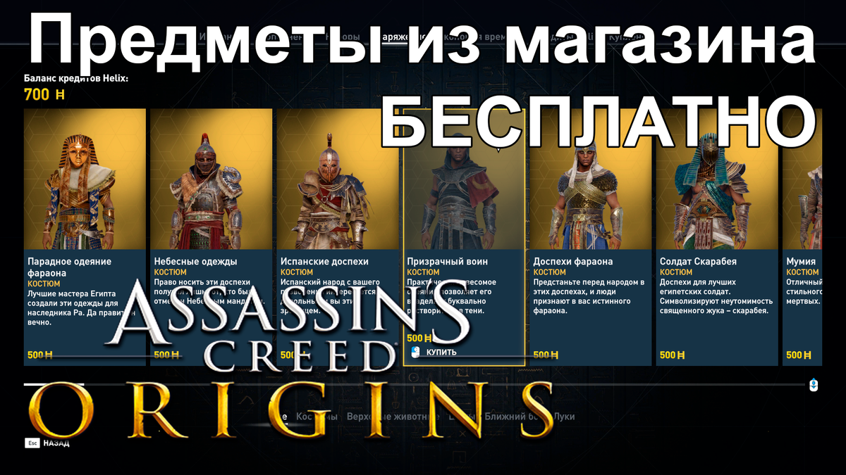 Как БЕСПЛАТНО получить платные предметы в Assassin's Creed: Origins из магазина Helix Store