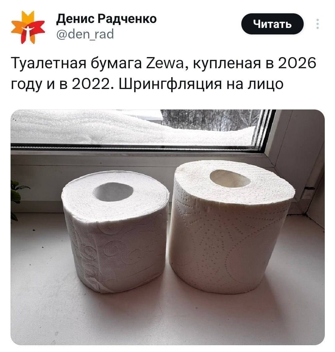 Посмотрим как изменился размер туалетной бумаги за четыре года.
