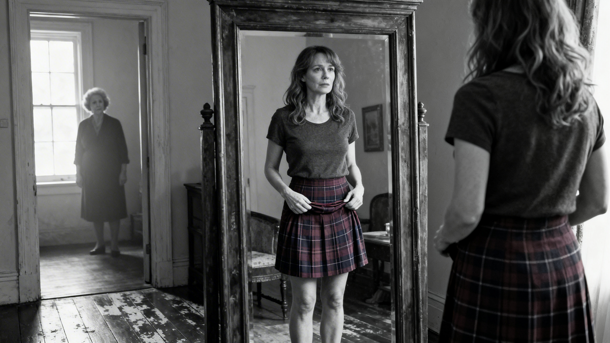 Сегодня Оля крутилась перед этим самым «неправильным» зеркалом в новой юбке. Юбка была короткая, клетчатая, на высокой талии — откопала на «Авито», винтаж, почти не ношенный. Сверху — простая белая футболка, кеды, волосы распущены. Нормально же.