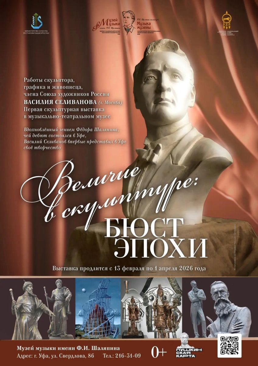 13 февраля, в день рождения Фёдора Шаляпина, в уфимском Музее музыки состоится торжественное открытие уникальной выставки. Она посвящена творчеству известного московского скульптора, графика и живописца, члена Союза художников России Василия Селиванова. Перед началом мероприятия состоится возложение цветов к памятнику великого артиста. Центральным экспонатом выставки «Величие скульптуры: бюст эпохи» станет ранее не известная широкой публике работа Василия Селиванова — бюст Фёдора Шаляпина. В Уфе художник впервые представит свои произведения. Вдохновлённый жизнью и талантом великого оперного певца, чей дебют состоялся в городе, Василий Селиванов дебютирует со скульптурной выставкой в музыкально-театральном музее. Василий Селиванов был близок Фёдору Шаляпину: их мастерские находились в одном флигеле на Долгоруковской улице, который когда-то арендовала у хозяйки усадьбы Татьяна Любатович, актриса Большого театра. Об этом «Башинформу» рассказала заведующая музеем Елена Ильина. Выставка, ко