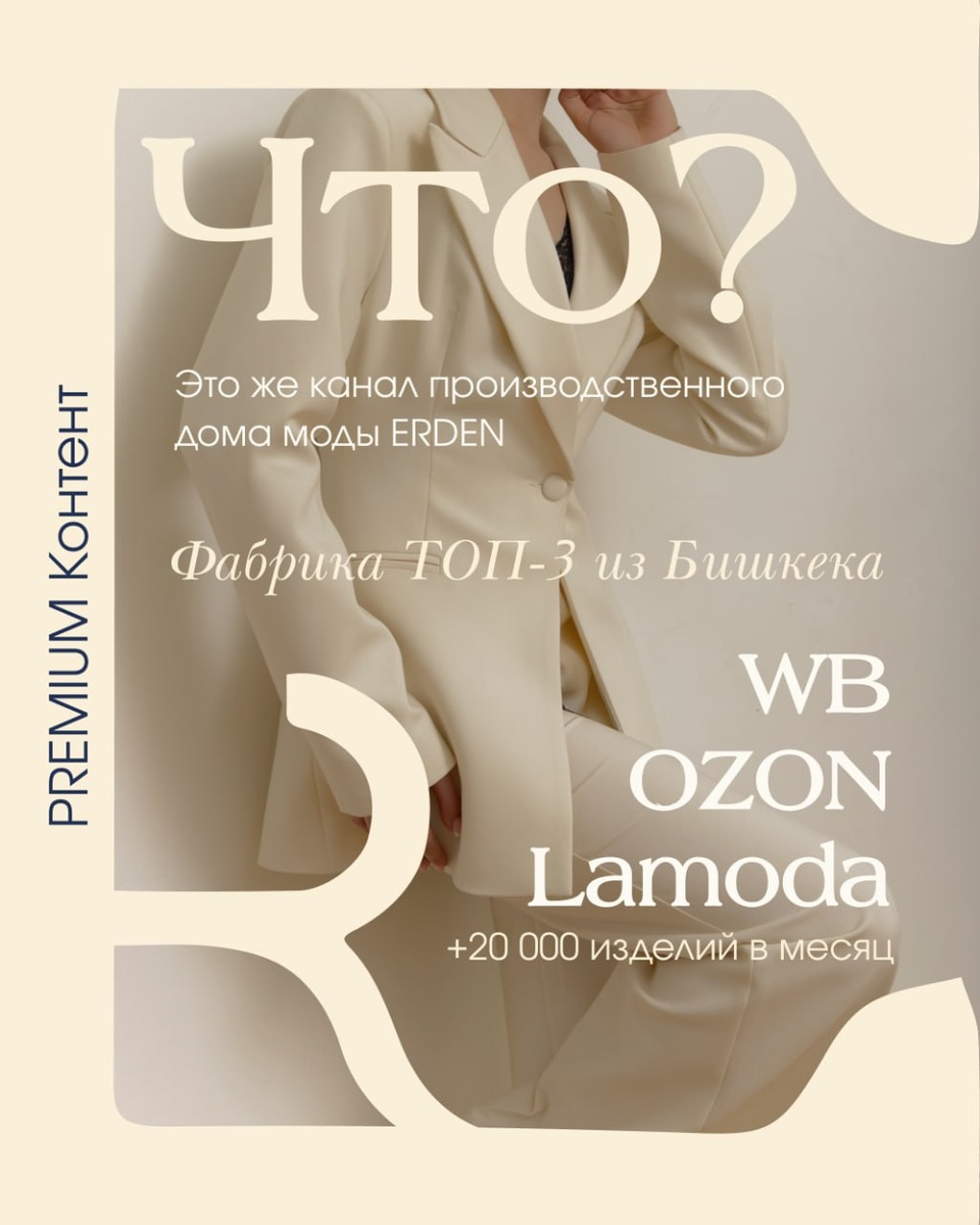 Производственный дом моды из Бишкека: ✔️Реальная фабрика ✔️Отшивают для 120 магазинов на WB / Ozon / Lamoda. ✔️+10 лет на рынке 📎 Публикуют вкусную внутрянку, процессы, разборы, механику продаж и готовые решения для селлеров в каталоге: - Основатель рассказывает кого "выдавят" с маркетплейсов в 2026 году - Кутюр 2026: как не просто смотреть за трендами, а использовать их - Разбор карточки: продай мне эту куртку на WB - Какие ИИ инструменты уже используют ваши конкуренты. ИИ НАС ЗАМЕНИТ? 👇Посмотреть и подписаться можно ПО ССЫЛКЕ #интеграция