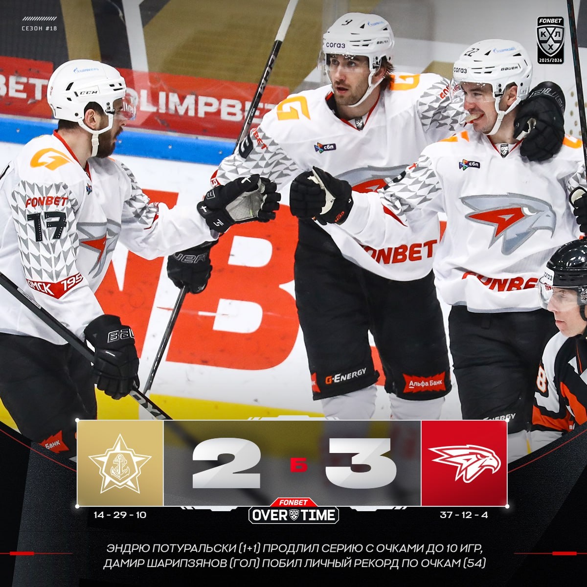 🦅 Два очка Эндрю Потуральски помогли «Авангарду» отыграться с 0:2 и победить во Владивостоке!