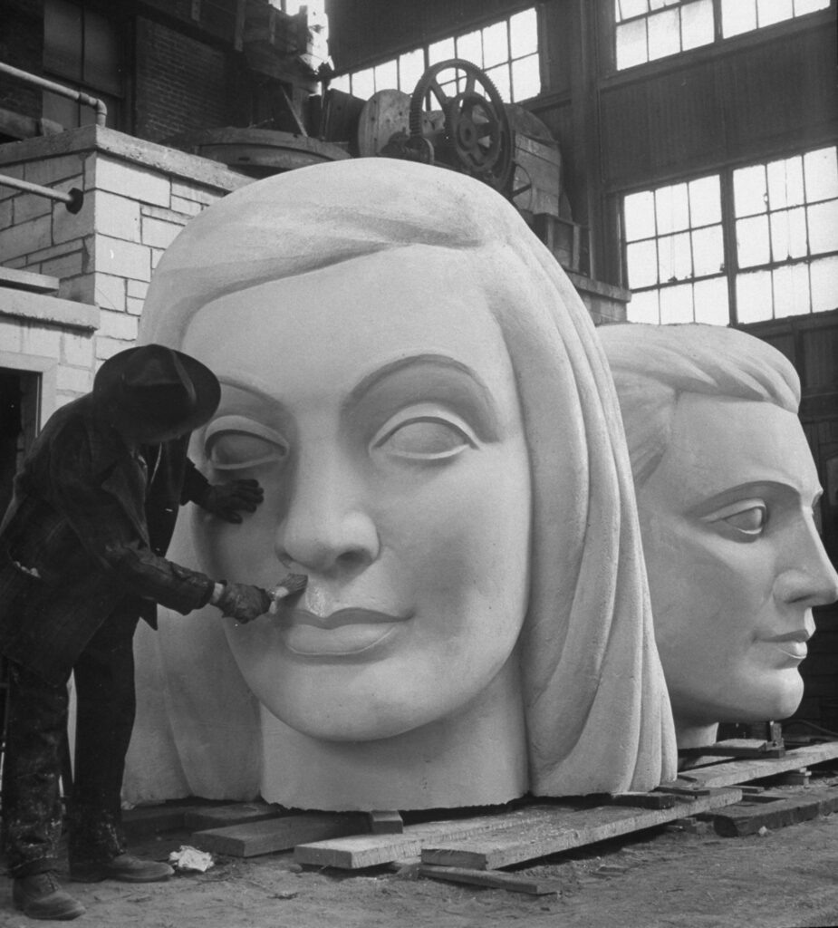 🏙 В 1948‑м Таймс‑сквер обзавёлся грандиозным рекламным щитом Bond Clothing — магазина мужской одежды. Что это было: ▪️водопад шириной 40 метров; ▪️пятиэтажные фигуры мужчины и женщины; ▪️«одежда» из 160 метров неоновой трубки. LIFE, хоть и окрестил конструкцию «анатомическим безобразием», опубликовал фото от Марты Холмс — от сборки до установки. На снимках: мастера шлифуют гигантские формы, зрители изумлённо разглядывают монументы. Сегодня вместо фоторепортёров были бы тысячи селфи. А тогда это был яркий пример того, как реклама превращала Таймс‑сквер в «освещённый театр американской коммерции».