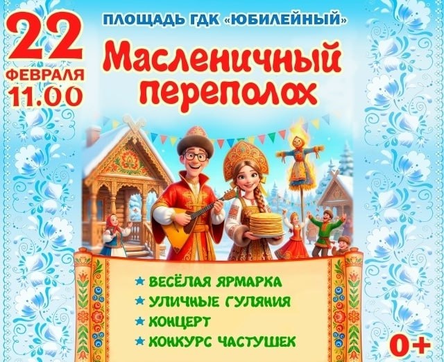 Масленичный переполох состоится 22 февраля в 11:00 на площади ГДК «Юбилейный» г.Володарск!