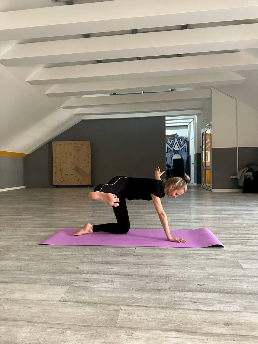 Точнее битиласана со звездочкой 😈 Я использую этот вариант в работе с опытными, физически подготовленными клиентами для балансировки латеральной и спиральной фасциальных линий. Почему этот вариант? А чтобы привыкшим к нагрузке, с развитой физикой клиентам стало очевидно (ох, как очевидео!), как именно строится взаимосвязь между правой и левой сторонами тела, передней и задней его поверхностью, пяткой и затылком, ягодницей и апоневрозом ладони. Почему именно битиласана так хороша в балансирующих целях? Потому что эта поза естественным образом активирует латеральную и спиральную фасциальные линии, учит их взаимодействовать друг с другом. Причем без экстремальных нагрузок на позвоночник, какую дают всеми рекомендуемые глубокие противоходные скрутки. Что значит «естественным образом активирует?» В этой позе нужно руку и ногу противоположные поднять до линии, параллельной полу, а потом перевести в противоположные стороны. Это и есть механизм запуска. Всё просто. Правда, есть одна су