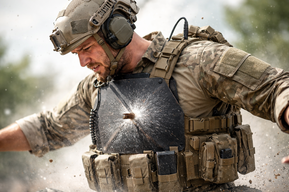 В кино это выглядит эффектно: герой получает пулю в грудь, отлетает на пару метров, кряхтит, медленно расстёгивает куртку и демонстрирует вмятину на бронике. В следующей сцене он уже бодро бежит в атаку держась за бок. Красиво? Да. Реально? Ни в коем случае. В жизни «непробитие» — это не конец истории, а только начало медицинского квеста. Если броня выдержала, это значит, что пуля не сделала в вас дырку, но это вовсе не значит, что вы остались целы. Давайте разберем физику этого процесса. Запомните базу: энергия не испаряется. Когда пуля весом в 8–10 граммов, летящая со скоростью 700–800 м/с, встречается с бронеплитой, происходит колоссальный выброс кинетической энергии. Броня делает две вещи: останавливает сердечник и распределяет удар по площади. Но закон сохранения энергии неумолим — вся эта мощь передается вашему телу. В баллистике это называется BABT (Behind Armor Blunt Trauma) — заброневая тупая травма. Физика здесь простая, как удар кувалдой: Звучит как сухая теория? А теперь п