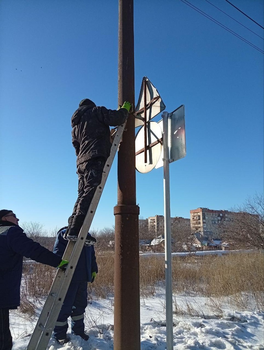 Дорожники региона-шефа провели демонтаж старых дорожных знаков и установили новые на улицах Ленина, Гагарина и Фрунзе.