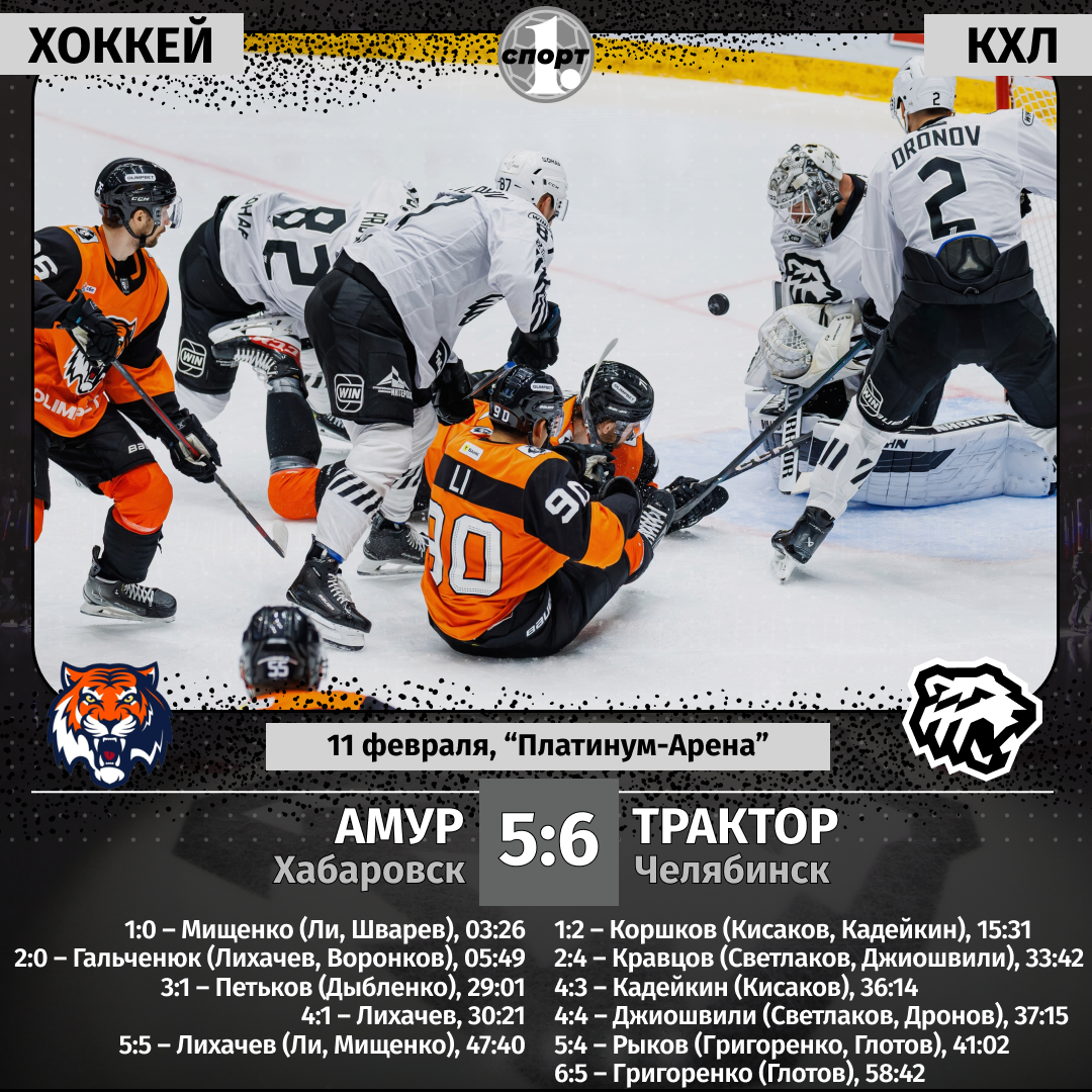Хоккей. Сезон-2025/2026. Чемпионат КХЛ. 11 февраля. «Амур» (Хабаровск) — «Трактор» (Челябинск) — 5:6 (2:1, 2:3, 1:2).