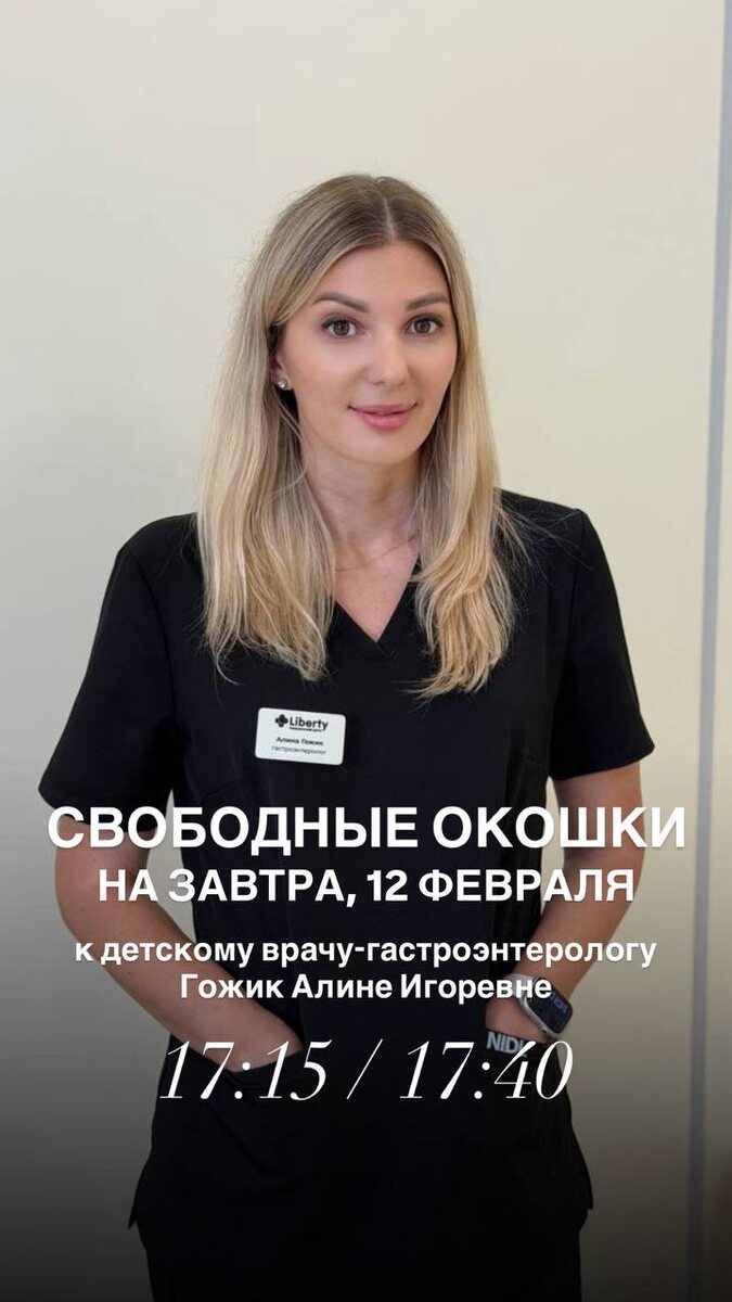 На завтра есть свободные окошки к детскому врачу-гастроэнтерологу 🙌🏻