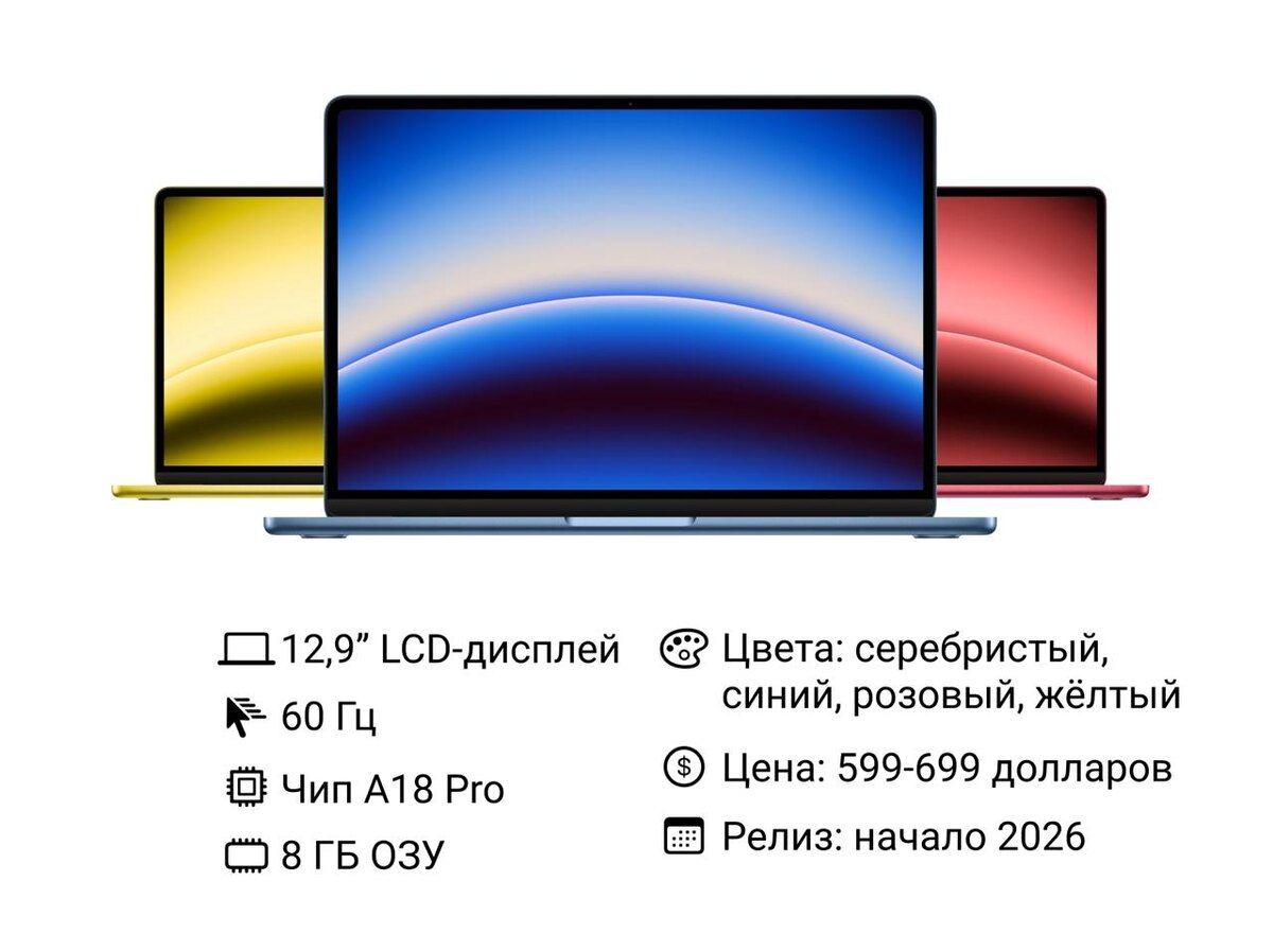 Инсайдеры сообщили, что новый бюджетный MacBook будет стоить 599–699 долларов. Ожидается, что модель появится в продаже по этой цене. https://dzen.ru/id/5c0e38ff46ef5c00aaa80527