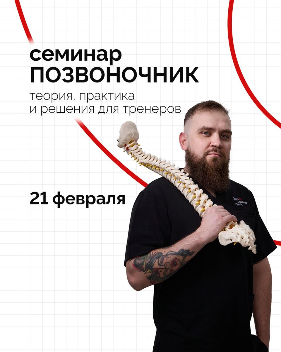 Этот семинар — о позвоночнике как ключевом элементе двигательной системы, влияющем на стабильность, координацию, перенос нагрузки и качество движения во всех тренировках. Мы разберём не только анатомию, но и практическое применение знаний, чтобы вы могли: - понимать, как позвоночник участвует в каждом движении и почему часто «боль в спине» — это симптом, а не диагноз; - оценивать подвижность и стабильность позвоночника у клиентов; - корректировать тренировки без риска навредить и с максимальной пользой; - интегрировать упражнения для спины в программу тренировки так, чтобы они работали для результата. Это не только про упражнения для спины — это про мышечную координацию, контроль корпуса, работу дыхания, адаптацию нагрузки и движение как инструмент здоровья. Лектор: Артеменко Илья Стоимость семинара: 5 000 р. Место проведения: м. Партизанская. Измайловское ш., 71, стр. 8. Фитнес клуб Манхеттен. Дата: 21 февраля Записаться: https://t.me/A_I_St_MaRaBu