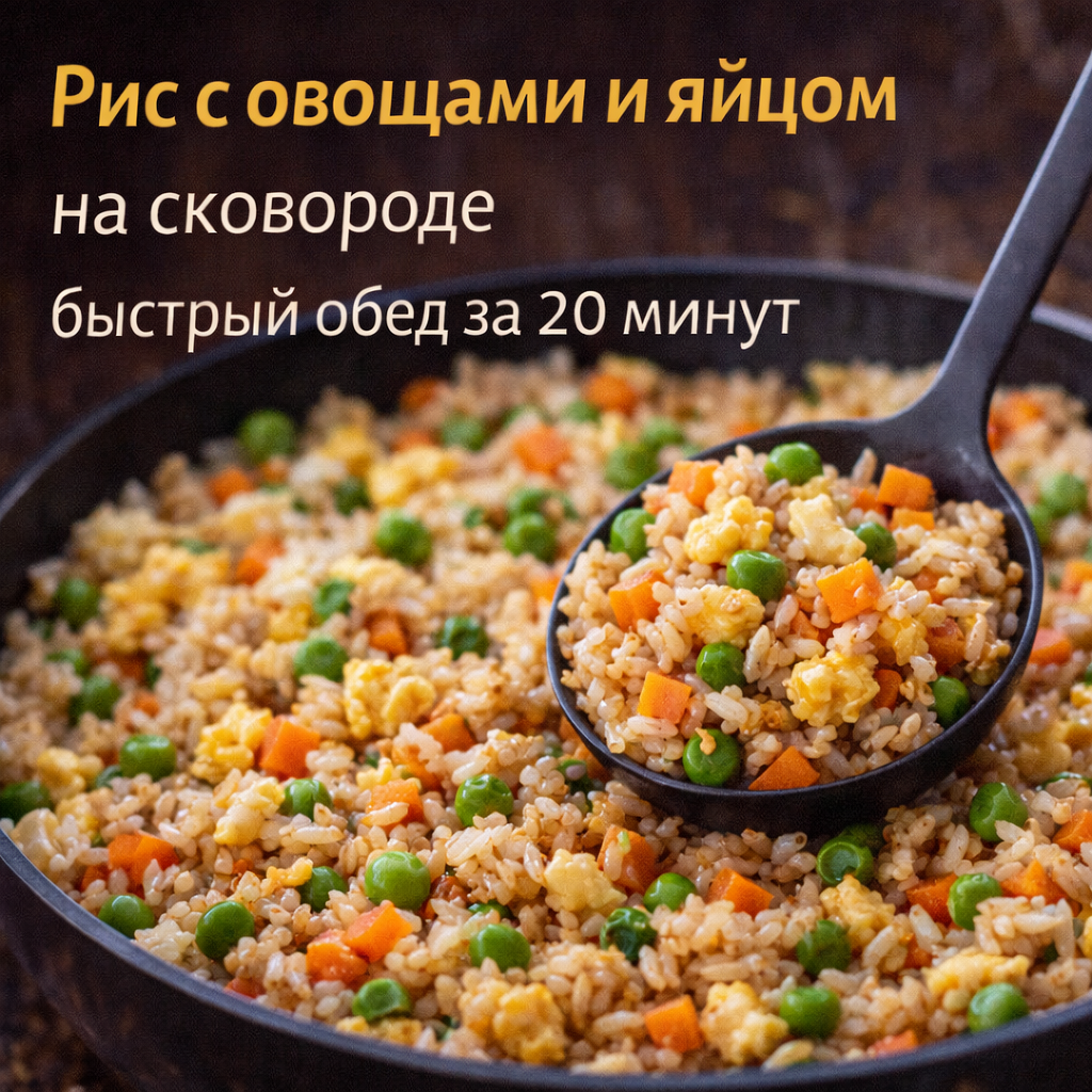 Готовится на одной сковороде и подходит даже для рабочего дня. Лучше всего подходит вчерашний рис — он не слипается.