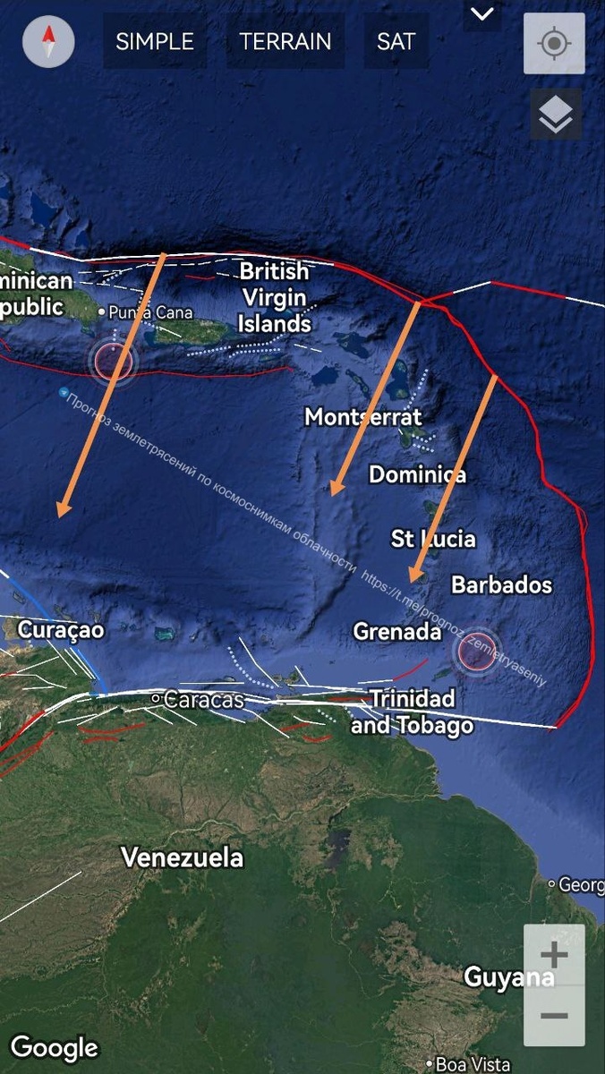 Вероятность землетрясения М6.5-7+ имеется на северо-востоке Карибской плиты в течение 9 дней