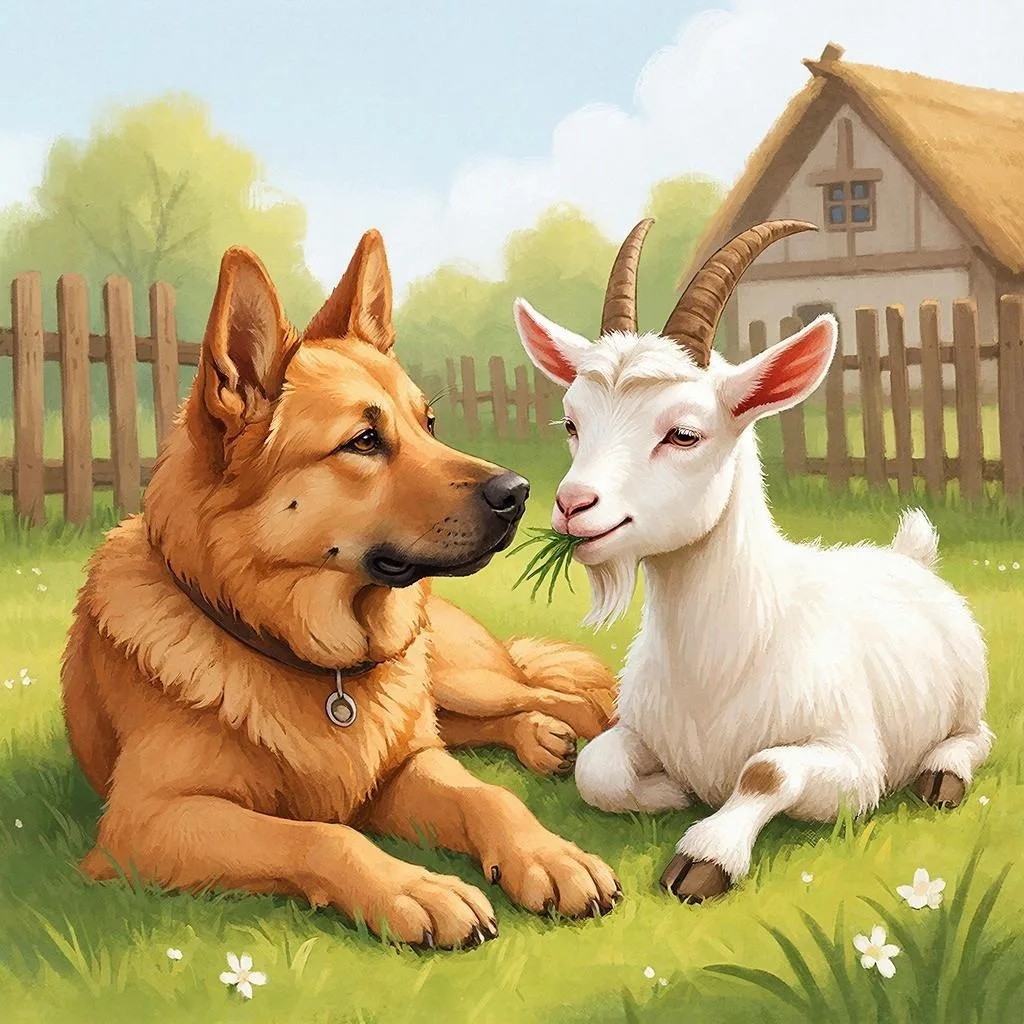 Коза тоже проявляла нежность. Прижималась к собакену.