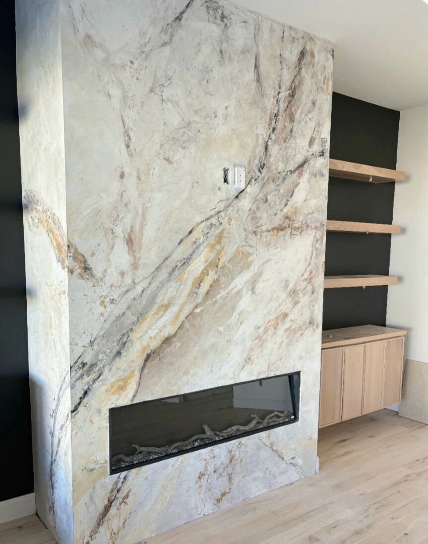 Венецианская штукатурка под эффект мрамора: когда отделка становится архитектурным акцентом Если вы на этапе ремонта и рассматриваете альтернативу натуральному камню, стоит внимательно изучить возможности венецианской штукатурки. Это не имитация в упрощенном смысле, а технологичный декоративный материал на основе извести и мраморной муки, который позволяет создать глубокий, многослойный эффект природного мрамора без утяжеления конструкции. На фото представлен каминный портал, выполненный в технике венецианской штукатурки под мрамор. Поверхность имеет характерную для природного камня структуру: плавные переходы оттенков, выраженные прожилки, легкую полупрозрачность слоев. Обратите внимание на несколько профессиональных нюансов: С точки зрения практики ремонта, у венецианской штукатурки есть объективные преимущества: При этом важно понимать: качественный результат напрямую зависит от подготовки основания и квалификации мастера. Это ручная техника, требующая точности и понимания поведения