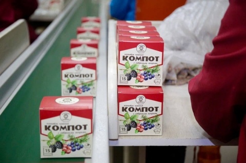 Как пояснила заместитель директора Наталья Яговкина, перед запуском изучили самые востребованные вкусы. «На основании рецептуры сотрудник взвешивает компоненты, затем смесь отправляется в купажный барабан… после чего фасуется в индивидуальные пакетики. Компот заваривается прямо в кружке и не содержит сахара», — рассказала она. Сейчас предприятие выпускает до трёх тысяч упаковок в день.