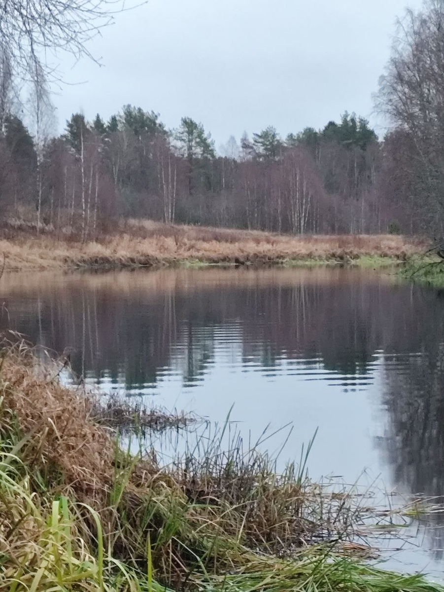 Тепло, но трава хрустит, на почве минус. И тишь встала невероятная, почти не видно течение реки.