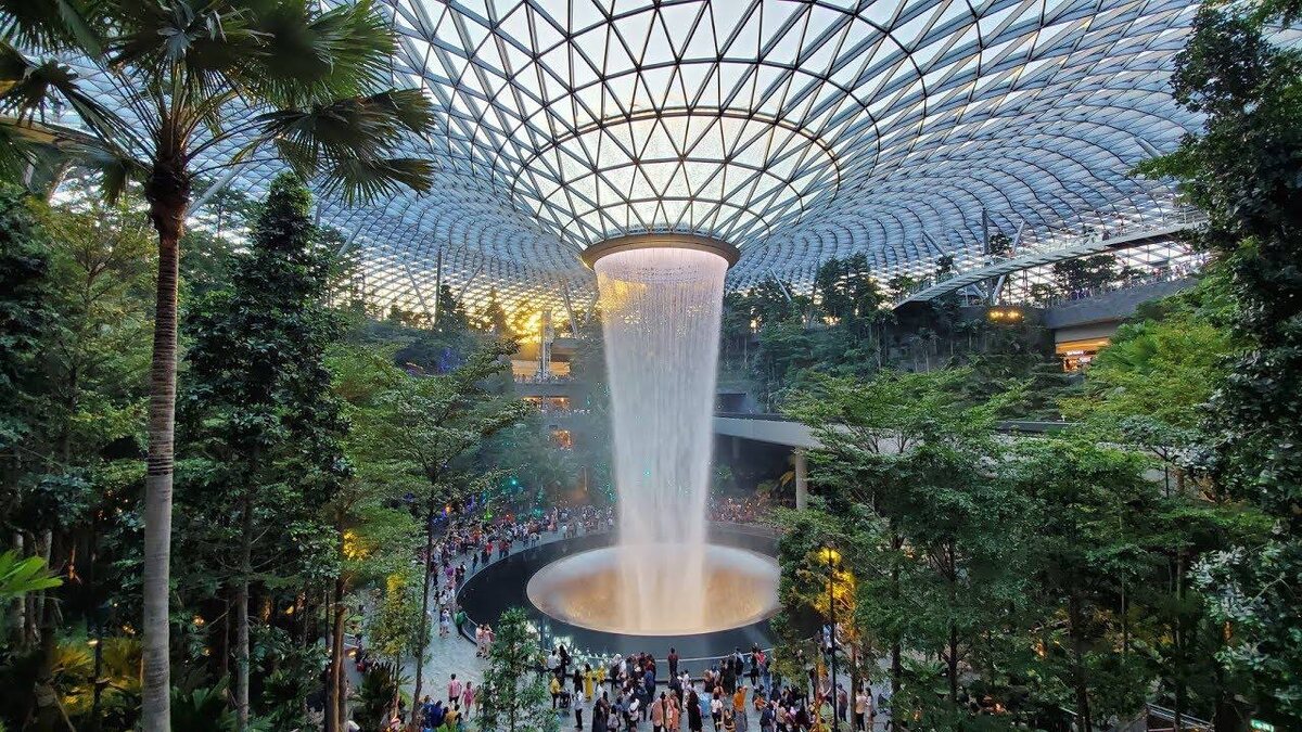 🌍 В аэропорту Чанги в Сингапуре внутри терминала находится настоящий тропический сад с водопадом высотой 40 метров. Он называется Rain Vortex и считается самым высоким крытым водопадом в мире. То есть формально вы уже в аэропорту, но вокруг — джунгли и шум воды, а не объявления о посадке 🌿✈️ #турфактдня #сингапур #аэропорты #путешествия #travel #tourism @turmexanika