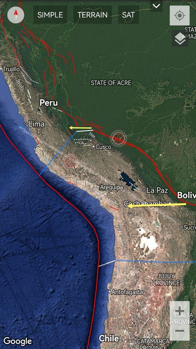 Ночью наблюдалась интенсивная дегазация (М6+) в районе Боливии-Перу на плите Альтиплано