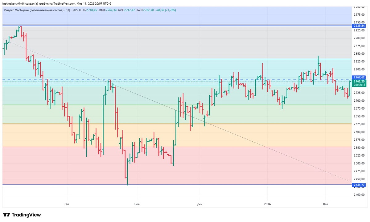 ❗️11 февраля российский фондовый рынок вырос, индекс МосБиржи укрепился на 1,5% до уровня 2757,75