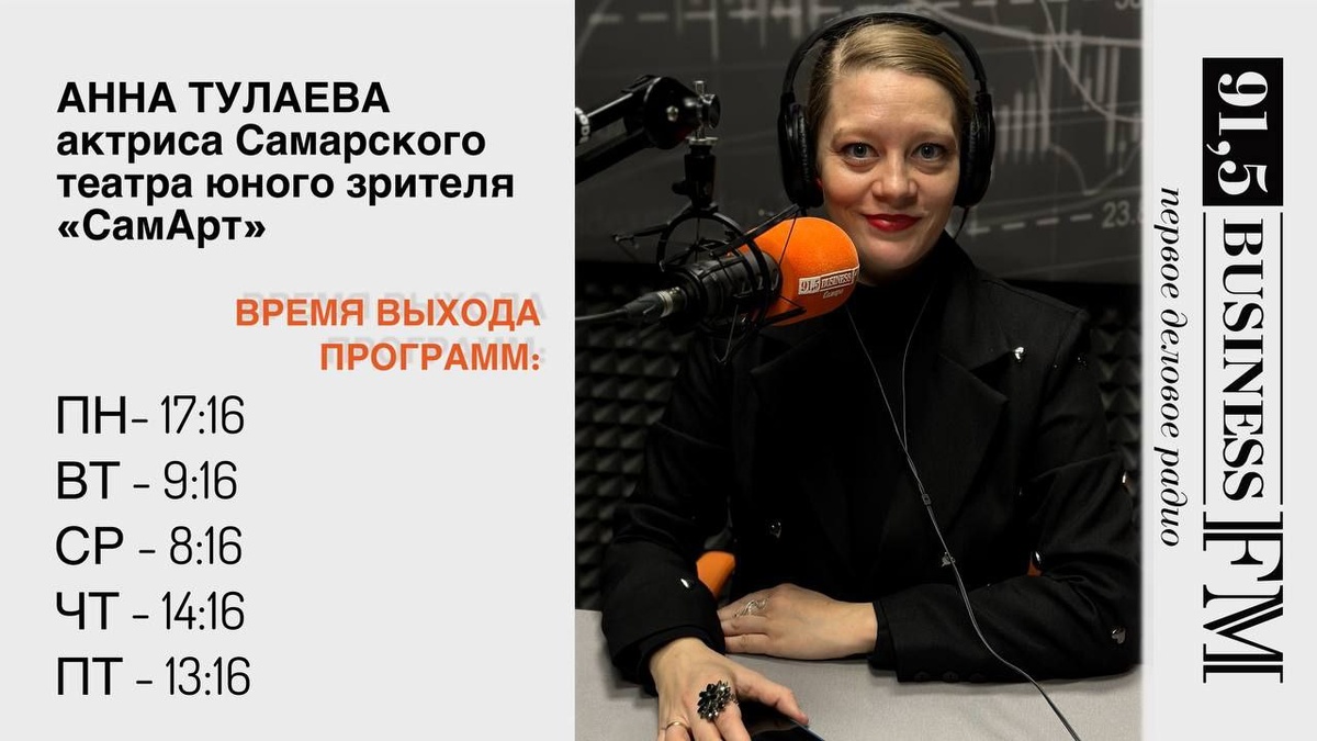 Актриса Самарского театра юного зрителя «СамАрт» Анна Тулаева стала гостьей программы «Культурный обзор» на радио Business FM