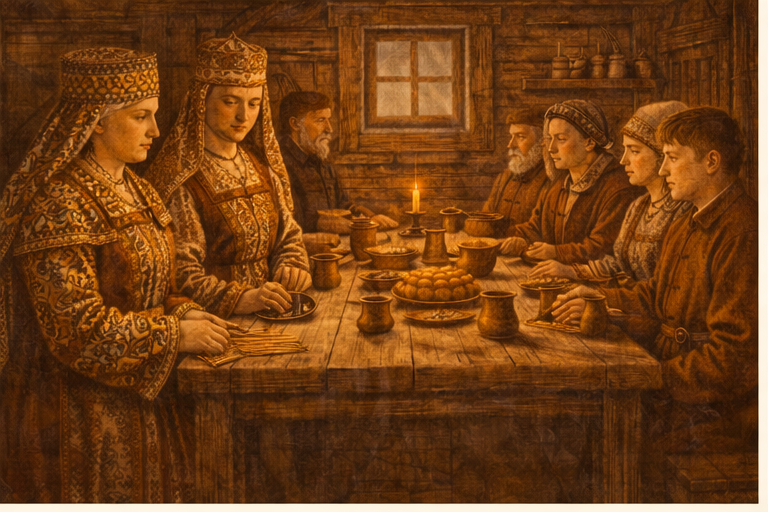 Вступление Россия XVII века — это не единое культурное пространство, а огромная территория с различными традициями. Север, центральные земли, Поволжье и южные окраины имели свои особенности быта и обряда. Свадьба сохраняла общую структуру, но в деталях могла заметно отличаться. Северные земли: строгость и архаика В северных регионах — Новгородских, Архангельских землях — свадебные традиции отличались особой строгостью и сохранностью древних форм. Здесь: • особенно ярко сохранялись причитания; • обрядовые песни могли длиться часами; • одежда имела насыщенные цвета и сложную вышивку; • большое значение придавалось символике головных уборов. Север дольше других регионов удерживал старые формы обряда. Центральная Россия: устойчивый канон В центральных землях — Московском регионе и прилегающих территориях — свадебный обряд был более унифицирован. Здесь сильнее ощущалось влияние: • церковного порядка, • сословной иерархии, • государственных норм. Свадьба строилась по чёткой структуре,