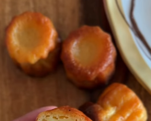 Снять с огня и дать настояться 15 минут. 2. В миске смешать яйца, желтки, сахар и соль венчиком до состояния однородной эмульсии. 3. При постоянном помешивании венчиком тонкой струйкой влить тёплое молоко. Комочков быть не должно! 4. Добавить муку и еще раз хорошо перемешать. 5. Постепенно влить ром. можно добавить немного апельсиновую цедру. 6. Накрыть тесто плёнкой и убрать в холодильник минимум на 24 часа, а лучше на 48 часов — вкус будет заметно глубже. 7. Разогреть духовку до 250 °С. 8. Формочки смазать сливочным маслом и заполнить тестом примерно на 80%. 9. Выпекать при 250 °С 10 минут,