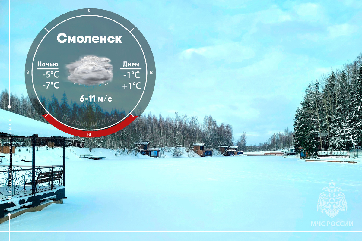Температура в Смоленске: ночью −7…−5°C, днём −1…+1°C.