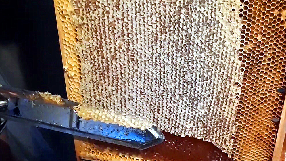 Зачем вообще распечатывать соты? Прежде чем качать мёд, нужно снять восковой «замок» — печатки, которыми пчёлы закрывают заполненные ячейки. Это необходимо: