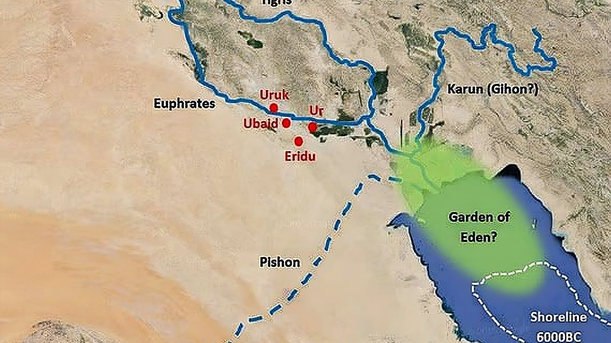 Исследователи решили найти участок земли, который был описан в Библии как Эдемский сад. Сделать это было непросто, так как география за тысячи лет значительно изменилась, а реки, указанные в священном писании, пересохли. Однако с помощью спутниковых снимков им это удалось. У ученых были сведения о том, что Эдем находится в краю с одной рекой, которая делится на Фисон, Гихон, Тигр и Евфрат. Если последние две до сих пор существуют на территории современного Ирака, то других уже давно нет. Описания прочей местности в Библии доказали, что там содержится реальная география. Получив эти знания, специалисты начали изучать снимки из космоса и искать очертания древних водоемов. Оказалось, что Фисон совпадает с Вади-эль-Батин — сухим руслом в Саудовской Аравии, у которого сохранились дюны и впадины, иллюстрирующие былые масштабы. Гихон же смогли рассмотреть в Иране, где река Карун протекает через горы Загрос. На данный момент это один из самых больших водоемов в государстве. Сопоставив все свед