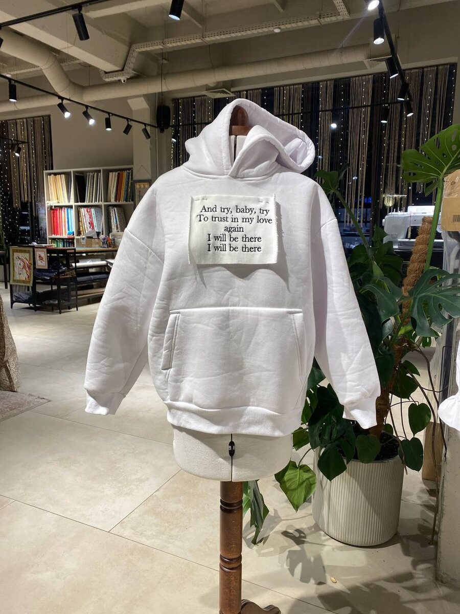 Иногда в корне все меняется. Как здесь. Хотели вышивать на белом худи, черными нитками, а вышили на коричневом желтыми. А ещё варианты шрифтов тоже могут быть разные, согласовываем всё 🙌🏻 Нам важно, чтобы ожидание клиента совпало с реальностью, и даже чуточку лучше 🥰