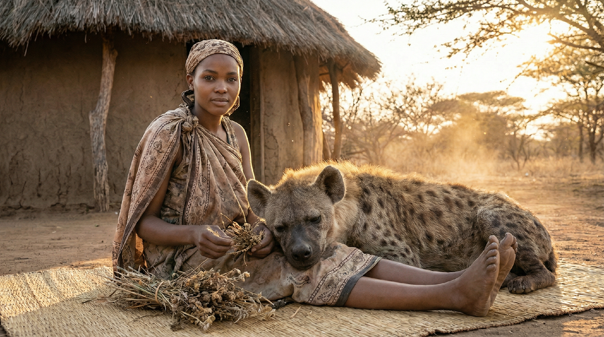 Самое странное было не в ней. Рядом с ней, положив огромную голову ей на колени, спала гиена. Пятнистая, с мощными челюстями, способными перекусить бедренную кость буйвола.