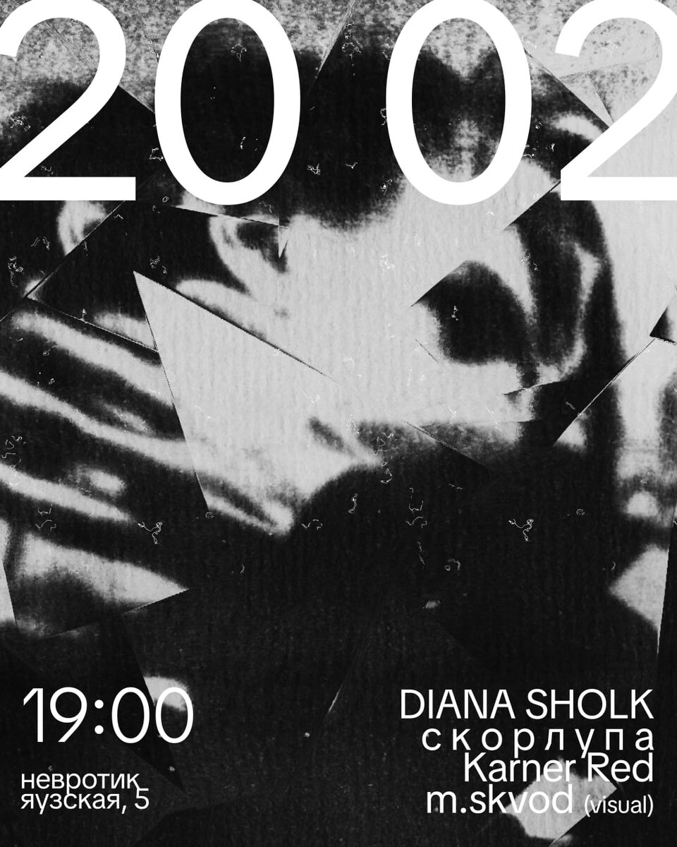 #electronic #experimental #instrumental #noise #postpunk #punk ► Видишь я всё ещё здесь ● TG ● VK Презентация нового альбома, резидента лейбла Fuselab Никиты Шишкина. Сырой пост-панк, нежные голоса, техно ритмы и голографическое оформление - в клубе невротик Участники: ► Diana Sholk ► с к о р л у п а ● TG ► Nikita Shishkin ● TG ● VK ► Karner Red ● TG ● VK Билеты от 500₽